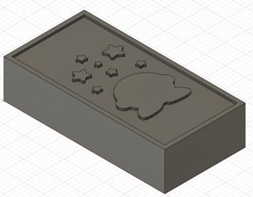 This step is carried out using Autodesk Fusion 360, which provides an integrated CAD/CAM environment. (Open-source alternatives may also exist, although Fusion 360 was used in this project.) The workflow begins by defining the stock geometry within the software. The imported .svg file is then positioned on top of the stock, and machining operations (e.g., cutting or extrusion) are defined based on the desired final geometry. After completing these steps, the setup appears as follows: